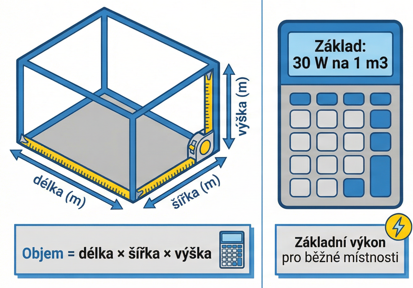 Základní výkon=30 W na 1 m³.