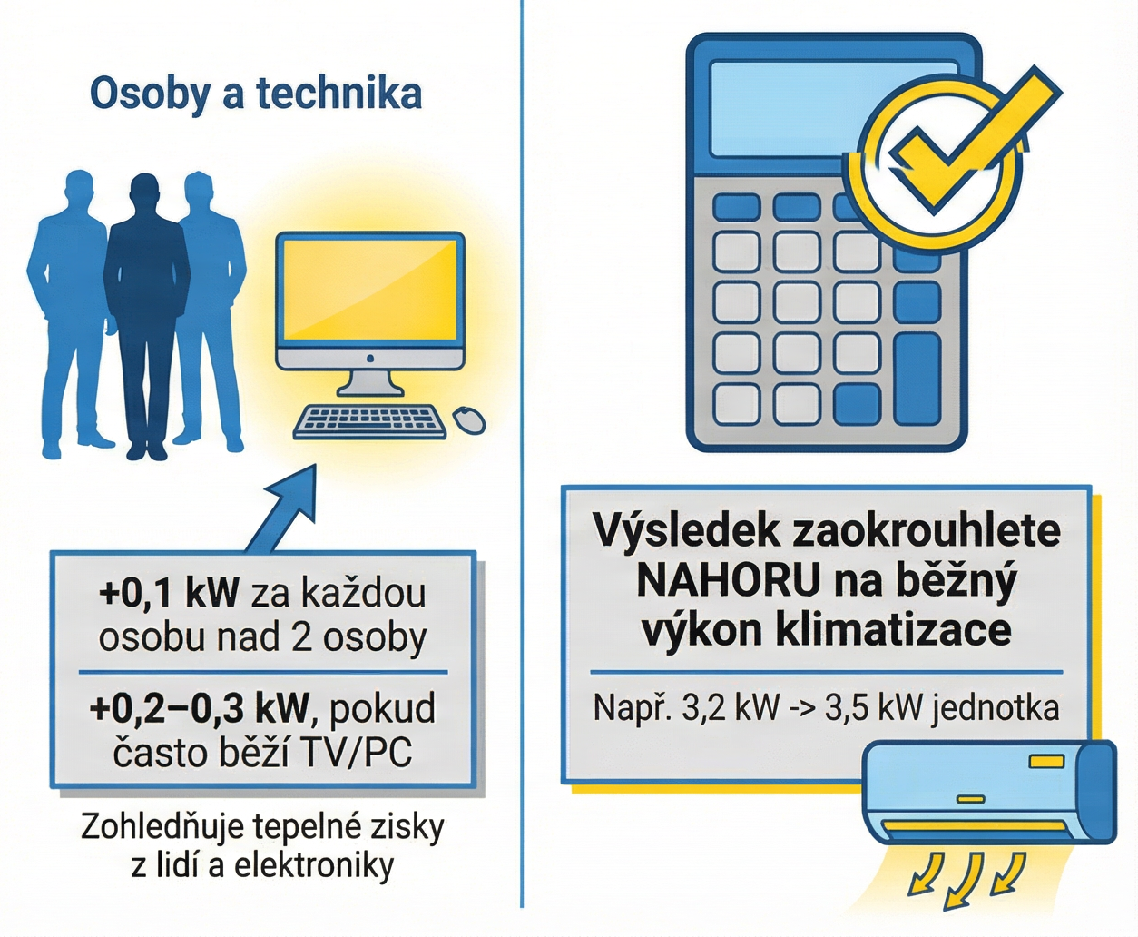 3. Počet osob, spotřebiče a zaokrouhlení na běžný výkon klimatizace